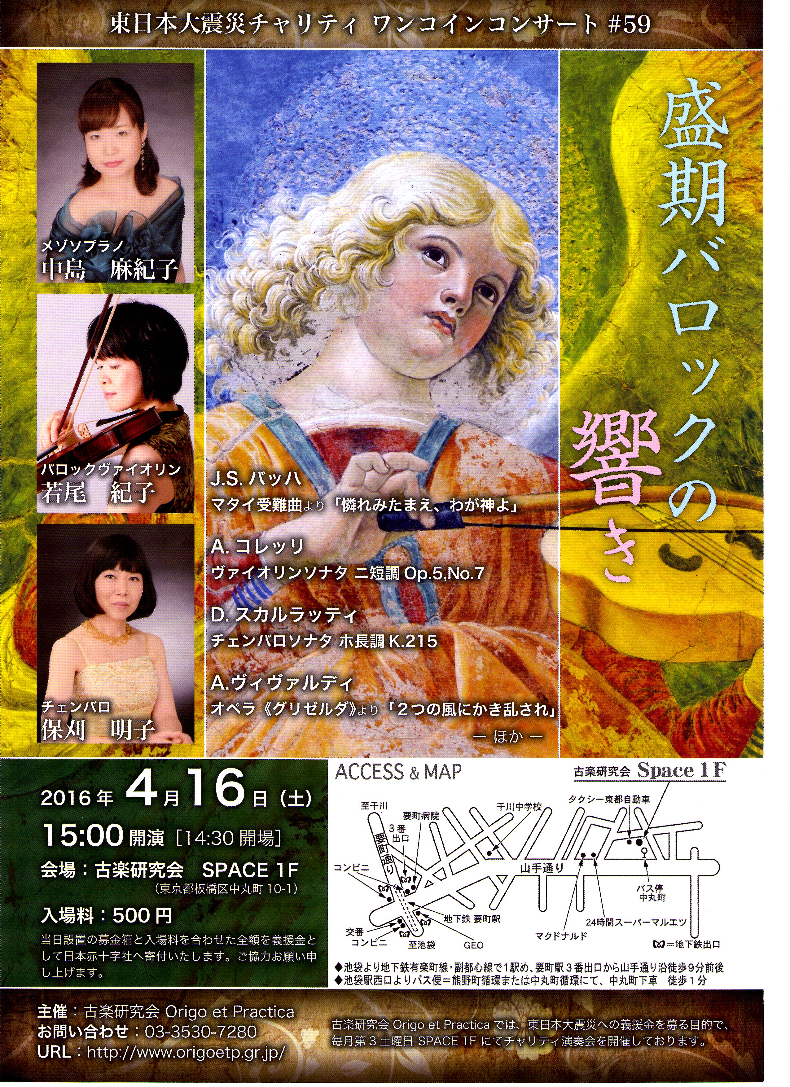今度の土曜はチャリティ ワンコインコンサート ♯59です。